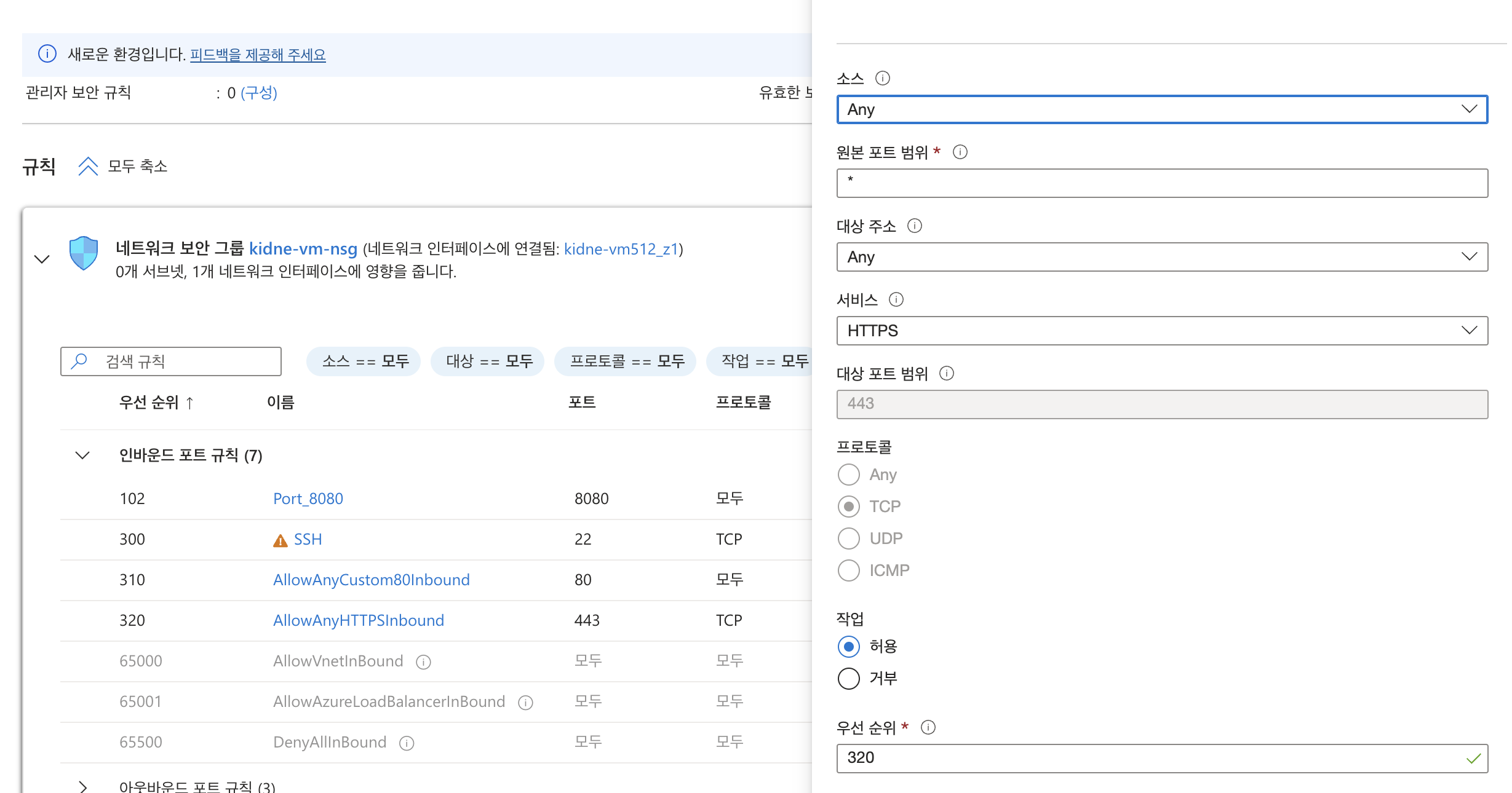 4. VM 네트워크 설정에서 인바운드 규칙 추가하기(443-https 포트- 열어주기)